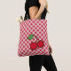 Bright red cherries and gingham decorate this stylish tote bag. The design is from original art.