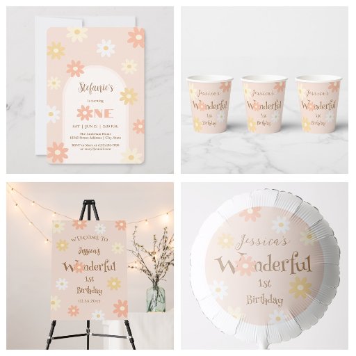 Yes! Our Independent Creators have worked hard to create many products as collections or in coordinating styles and new designs are added daily to many different products. Some popular supplies that match Retro Chic Bohemian Daisy 1st Birthday Baby Photo Invitation include napkins and posters that are among our best sellers but we also have many more products you can look at.
