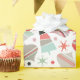 A holiday wrapping paper with retro chic style, this design features a pattern of 1940's and 50's style Christmas trees, ornaments and snowflakes scattered randomly across the paper. The mid-century modern color scheme includes coral, sage green, light green, brown-black and subdued pink and is suitable for all ages. Other matching items are available in this design style to coordinate your holiday look.