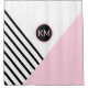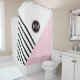 Redecorate your bathroom with a designer look using this personalized contemporary pop art geometric pattern with a retro chic vibe. This stylish designer shower curtain has angled black stripes and pink color block positioned in an envelope style with a prominent matching round frame surrounding your monogram. Personalize with your desired monogram for a custom look that is uniquely you. Other matching bathroom and bedroom decor products are available in this design for a coordinated look.