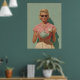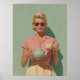 Step into a sunlit moment of timeless charm with this vintage-inspired artwork. A poised woman, dressed in mid-century fashion with a rose-pink blouse, gingham skirt, and pearl necklace, stands against a pastel teal wall. Her classic blonde curls and cat-eye sunglasses echo the elegance of the 1950s. She holds a mint green teapot and a dainty teacup, suggesting an afternoon tea infused with retro glamour. This image captures the grace and sophistication of a bygone era, perfect for lovers of vintage style, retro fashion, and nostalgic decor. Ideal for prints, posters, and lifestyle accessories, this piece brings a warm, stylish vibe to any space or product. Whether you’re designing kitchen items, home decor, or stylish stationery, this design evokes calm sophistication and cheerful charm.
