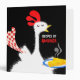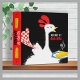 Cute chicken with retro vibe holding a napkin and plate of corn on this cookbook binder or recipe organizer, personalized with your name, title, and choice of background and text colors.