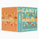 Super sweet retro style candy or confections personal cookbook or recipe binder with chocolate truffles with colorful paper cups and dancing hearts, perfect for your perfected candy-making recipes or for your keepsake recipe collection.