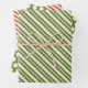 Retro Christmas Dots and Stripes Olive Green & Red Wrapping Paper Sheets