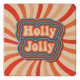 Retro Christmas Holidays Holly Jolly Typography trivets features a festive retro script "Holly Jolly" in modern typography accented on a sun ray background. Perfect for Christmas gifts and favors. Designed by © Evco Holidays www.zazzle.com/store/evcoholidays