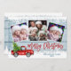 Retro Christmas Red Truck Rustic 3 PHOTO Greeting Holiday Card