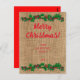 Retro Christmas red typography burlap Postcard. Personalized text.