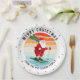 Retro Christmas Sunset Skiing Santa Personalized Paper Plates