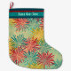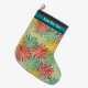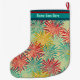 The original design on this happy looking Christmas Stocking portrays a blizzard of flower like Pompoms made of tinsel, and using a tropical color palette of turquoise, sea-foam, deep yellow & scarlet red that spread from Cuba to South Florida & to the rest of the USA during the 1950's to early 1960's. Topped w/ dark & medium teal borders & a scarlet band, you can personalize the text w/the intended recipient's name & also choose fabric type, size, & 1 or 2 sided printing.