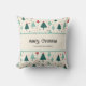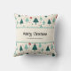 Decorate for the holidays with this customizable Merry Christmas throw pillow. The design has a retro Christmas tree pattern with an off white/cream background and can be personalized with your family name. Makes a great party or housewarming gift.