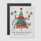 Retro style colorful Christmas tree with hanging ornaments top border. Customize with your own holiday greeting and name(s) or special message from your business or group.