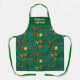 Traditional holiday apron where the deep red, rich blue, and shimmering gold and green retro Christmas ornaments create a mesmerizing pattern.