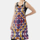 Add retro flair to your cooking routine with this bold **Geometric Circles Apron** featuring overlapping circles in rich tones of purple, mustard yellow, and red. Set on a crisp white background with matching white straps, this apron brings vintage-modern charm into any kitchen, craft room, or backyard BBQ.
