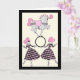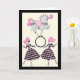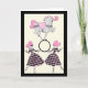 A talented grey circus pony balances on a hoop held by pink haired harlequin girls. Lovely pink, black and cream color scheme. Personalize the inside with text for that special person.