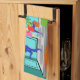 This Retro Classic Television Kitchen Towel takes you back to a simpler time. The 1960's style, minimalist, cartoon drawing will have you looking for the opening credits. The design shows a mid century modern, sunken, living room with teal and turquoise walls and a red, cone shaped fireplace, complete with a roaring fire. All eyes are on the lanky, man of the house as he makes his grand entrance. The handsome Mister is wearing a blue suit and orange tie. His lovely Mrs. and energetic, young son are rushing to greet him. The lady of the house is wearing a hot pink, sheath dress, which she fills out in all the right places. The flip in her dark hair is sheer perfection. Junior is wearing a red shirt and blue jeans for his dash to see if his father has brought him anything. Whoa! Don't knock over the potted plant, Junior! On the lower level, we can see a green couch and an orange coffee table. Wait! We appear to have guests! Seated on the couch are a dark haired man in a blue suit and red tie, alongside a shapely blonde woman in a red dress with a red bow in her hair. Hey! It's Dad's coworkers. How did they get there first? It's one of the eternal mysteries of television. It looks like we're all set for a great evening in sitcom suburbia. But, first, we have to see if Dad is going to trip over the orange ottoman or sidestep it with some fancy footwork. Oh, the zaniness! The only thing missing from this scene is the theme song. And, if you listen closely, you can probably hear it in your mind.