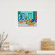 This Retro Classic Television Poster takes you back to a simpler time. The 1960's style, minimalist, cartoon drawing will have you looking for the opening credits. The design shows a mid century modern, sunken, living room with teal and turquoise walls and a red, cone shaped fireplace, complete with a roaring fire. All eyes are on the lanky, man of the house as he makes his grand entrance. The handsome Mister is wearing a blue suit and orange tie. His lovely Mrs. and energetic, young son are rushing to greet him. The lady of the house is wearing a hot pink, sheath dress, which she fills out in all the right places. The flip in her dark hair is sheer perfection. Junior is wearing a red shirt and blue jeans for his dash to see if his father has brought him anything. Whoa! Don't knock over the potted plant, Junior! On the lower level, we can see a green couch and an orange coffee table. Wait! We appear to have guests! Seated on the couch are a dark haired man in a blue suit and red tie, alongside a shapely blonde woman in a red dress with a red bow in her hair. Hey! It's Dad's coworkers. How did they get there first? It's one of the eternal mysteries of television. It looks like we're all set for a great evening in sitcom suburbia. But, first, we have to see if Dad is going to trip over the orange ottoman or sidestep it with some fancy footwork. Oh, the zaniness! The only thing missing from this scene is the theme song. And, if you listen closely, you can probably hear it in your mind.