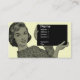 Business cards featuring a vintage 1950s illustration of a woman holding a clipboard. Customize them with your own background color and information. Retro cool!