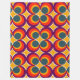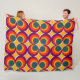 This large fleece blanket has a mid-century modern design of concentric circles in 1970s colors with stars between each group.