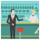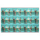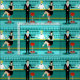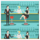 Every hour is happy hour with this Retro Cocktail Lounge Fabric. The mid century modern design features a vibrant, 1960's style, minimalist, cartoon drawing of a classy, cocktail bar. Against the backdrop of an aqua wall, we can see rows of drink glasses. At least we can see the teal silhouettes of drink glasses. Judging from the shapes of the stemware, this bar is well equipped to wet your whistle, whatever your drink preference. A most competent and personable bartender is manning the teal bar with yellow accents. The young barkeep is wearing a pristine, white shirt with black bow tie. His fresh-faced good looks, blond hair and black hipster glasses give us every reason to believe that he either spends his days as a struggling actor or a superhero. In one hand, the handsome mixologist is handing a martini to a customer on the opposite side of the bar. The waiting customer is a broad-shouldered gentleman in a black suit and red tie. He's the sort of fellow who is described as tall, dark, and handsome even when it's still hours until closing time. There seems to be a red and chrome bar stool with Mr. Debonair's name on it. Yet, not to be presumptuous, he asks the question, "Pardon me. Is this seat taken?" He is asking the raven haired gal on the neighboring bar stool. She's a real "girl next door" type, if you happen to live next door to a flawless beauty with a figure that won't quit. She is wearing a black dress and holding a martini in one hand. She's hoping that she and the approaching gentleman have more in common that their drink preference and choice of wardrobe color. It looks like this evening just got interesting. Cheers to you!