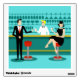Every hour is happy hour with this Retro Cocktail Lounge Wall Decal. The mid century modern design features a vibrant, 1960's style, minimalist, cartoon drawing of a classy, cocktail bar. Against the backdrop of an aqua wall, we can see rows of drink glasses. At least we can see the teal silhouettes of drink glasses. Judging from the shapes of the stemware, this bar is well equipped to wet your whistle, whatever your drink preference. A most competent and personable bartender is manning the teal bar with yellow accents. The young barkeep is wearing a pristine, white shirt with black bow tie. His fresh-faced good looks, blond hair and black hipster glasses give us every reason to believe that he either spends his days as a struggling actor or a superhero. In one hand, the handsome mixologist is handing a martini to a customer on the opposite side of the bar. The waiting customer is a broad-shouldered gentleman in a black suit and red tie. He's the sort of fellow who is described as tall, dark, and handsome even when it's still hours until closing time. There seems to be a red and chrome bar stool with Mr. Debonair's name on it. Yet, not to be presumptuous, he asks the question, "Pardon me. Is this seat taken?" He is asking the raven haired gal on the neighboring bar stool. She's a real "girl next door" type, if you happen to live next door to a flawless beauty with a figure that won't quit. She is wearing a black dress and holding a martini in one hand. She's hoping that she and the approaching gentleman have more in common that their drink preference and choice of wardrobe color. It looks like this evening just got interesting. Cheers to you!