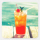Retro cocktail sunset pool bar square sticker