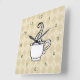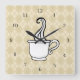 Beige argyle and a steamy coffee cup give this wall clock retro style. The design is from original art.