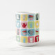 Retro coffee mug with pots and cups with squares in 1950s vintage kitchen colors. Some items have classic atomic designs. Great for someone that loves 50s themes or mid century modern style. This would be perfect for a retro theme décor. You can make the pattern bigger or smaller. Here are some colors you can use to match the pattern if you want to add a your name or initial. Grey: a5a5a5 Red: bc0a1b Green: a9cca2 Pink: f3c2c8 Blue: 81c3cf