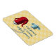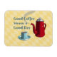 This retro magnet has a mid century modern good coffee sign with a retro percolator coffee pot with the saying “Good Coffee Means A Good Day”. The design is a yellow checker background, blue mug filled with coffee and vintage red coffee percolator. The whole design is done in a classic vintage print textures. This magnet is great to brighten up any mid century modern kitchen decor.