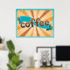 Retro Coffee Typography Teal Brown Sunburst Poster