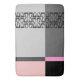 Mid Century Modern shapes on a color blocked background in pinks and greys