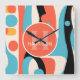 Retro Colorful Abstract Pattern with Monogram Square Wall Clock