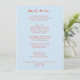 A colorful retro funky modern bright wedding dinner menu. Which features chic template design of boho vintage sky blue background and orange typography and hand written menu in red. Perfect and matching with the whole suite.