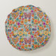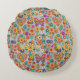 Retro colorful flowers pattern. L Grey BG Round Pillow