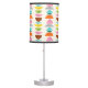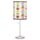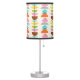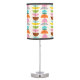 Feather your nest with this Retro Colorful Nests Table Lamp! The design features a cream background with gold speckles and rows of wonderfully kitschy, colorful semi-circles resting on minimalistic, black branches. The semi-circles resemble fairy tale, bird's nests in shades of light blue, teal, turquoise, orange, pink, yellow, green, gray, and brown. The orange nests have a fun brick pattern and the brown nests feature a cartoon wood grain. The nest filled trees alternate between right-side up and upside down, which means this whimsical design even looks perfect when standing on your head. This pattern is reminiscent of a vintage mid century modern design. You're sure to enjoy our homage to the 1950s. Buy this today and be the coolest cat on your block.