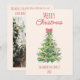 Retro Colorful Quirky Red Green Christmas Bow Tree Holiday Card