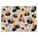 A Large Gift Bag Designed In Retro Colors Of Black, Teal, Gold And Orange Shaped In A Floral Leaf Design