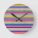 Retro Colors Textured Look Stripes Round Clock