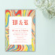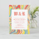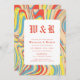 Fusion of retro and modern designs featuring swirl marble abstract pattern with old English font monogram personalized wedding invitation. Orange, yellow blue and pink color palette wedding invite with swirl marble pattern background. This card is easily editable. If you need help with the customization of this product or you need more matching products for this collection kindly message me via Zazzle.