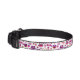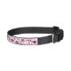 Good quality and fit is perfect for our Treeing Walker Coonhound/Beagle mix - about 45lbs and 15” neck. I wish it was pink all around (why I took off 1 star) but goid quality, printing! See above description - I added the flower to her collar in the photos