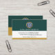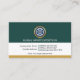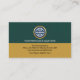 A retro column design with the colors of green, white and brown. You have a gold global logo at the top you can use alongside its business name. In the corresponding white layer lies your prestigious name and job title with the contact details in their respective buttons. A slogan caption option which you can change is at the base.