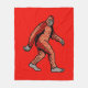 A legendary woodland figure strides through a dense forest of evergreen trees in this striking pop art comic panel. Rendered with bold black outlines and a vibrant palette of forest greens, the design utilizes intricate halftone patterns to create depth and a classic vintage print aesthetic. This fleece blanket captures the mystery of the wilderness with high-contrast styling and retro artistic flair, making it a unique statement piece for fans of folklore and comic book illustration.