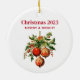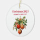 An ornament with a vintage style illustration. 3 red Christmas baubles surrounded by green holly and berries. Stylish retro design.