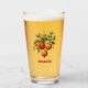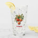 Glass tumbler with a vintage style illustration. 3 red Christmas baubles surrounded by green holly and berries. Stylish retro design.