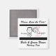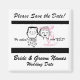 A retro style Save the Date wedding magnet featuring a black line drawing of a bride and groom and text that reads "Please Save the Date!" and "He asked! I said YES!". You can easily add your wedding date and names to this customizable Save the Date magnet.