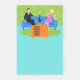 This Retro Couple with Cat Post-It Notes features a cartoon couple trying to get cozy while watching television on a mid century modern, blue sofa. The cat, however, has other ideas. On one side of the sofa, there is a handsome man in a black suit with red tie. On the other side of the stylish couch, there is a beautiful, blonde woman in a form fitting, hot pink dress. Things would be going great if it weren't for the sleek black cat, which has laid claim to the center sofa cushion. This 1960's style, minimalist art design is set in a stylish living room. The sofa's backdrop is a green, stone wall. On the aqua floor, there is a round, green shag rug, which matches the stone wall. At the forefront of the design, we see the back of an orange television set with rabbit ears, which seems to be playing the cat's favorite TV program.