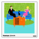 This Retro Couple with Cat Wall Decal features a cartoon couple trying to get cozy while watching television on a mid century modern, blue sofa. The cat, however, has other ideas. On one side of the sofa, there is a handsome man in a black suit with red tie. On the other side of the stylish couch, there is a beautiful, blonde woman in a form fitting, hot pink dress. Things would be going great if it weren't for the sleek black cat, which has laid claim to the center sofa cushion. This 1960's style, minimalist art design is set in a stylish living room. The sofa's backdrop is a green, stone wall. On the aqua floor, there is a round, green shag rug, which matches the stone wall. At the forefront of the design, we see the back of an orange television set with rabbit ears, which seems to be playing the cat's favorite TV program.