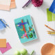 I was super excited when I got my cover in. It is attached by a magnet across the edge. I don’t think it will be very protective but it is very cute. I’m going to keep my iPad in a sleeve and use this face cover while I have it out. It folds to create a tilt for better viewing and to keep the iPad at a slight angle for typing. The colors are bright and it is fun. I’ve really enjoyed it. The personalization looks like amazing. It is the same color as the picture and is the same brightness. Well done! Very nice.