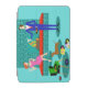 This Retro Couple with Dog iPad Mini Cover looks like a scene out of a romantic comedy. The 1960s's style, minimalist art design features an attractive couple enjoying a romantic evening at home. The sophisticated room prominently features an aqua and teal brick fireplace with a bright red ledge. A beautiful, redhead woman wearing a bright, pink dress is perched on the ledge. She is enjoying a martini with a floating olive, a roaring fire, good music, and the company a tall, dark and handsome man. The man is wearing a blue suit and red tie. His martini glass is raised to toast his charming companion. In his other hand, he is holding a vinyl record album. At his feet, we see a most adorable dachshund wearing a red collar. The playful wiener dog is walking in the direction of a green record player with orange, spindle legs. On the floor, there is a colorful group of fun, eclectic, vinyl records. Cheers! Here's to the perfect evening at home.