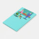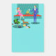 This Retro Couple with Dog Post-It Notes looks like a scene out of a romantic comedy. The 1960s's style, minimalist art design features an attractive couple enjoying a romantic evening at home. The sophisticated room prominently features an aqua and teal brick fireplace with a bright red ledge. A beautiful, redhead woman wearing a bright, pink dress is perched on the ledge. She is enjoying a martini with a floating olive, a roaring fire, good music, and the company a tall, dark and handsome man. The man is wearing a blue suit and red tie. His martini glass is raised to toast his charming companion. In his other hand, he is holding a vinyl record album. At his feet, we see a most adorable dachshund wearing a red collar. The playful wiener dog is walking in the direction of a green record player with orange, spindle legs. On the floor, there is a colorful group of fun, eclectic, vinyl records. Cheers! Here's to the perfect evening at home.