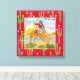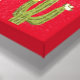 This retro cowboy personalized canvas is great for anyone who's a western lover! A rodeo style cowboy in a red shirt twirls his lasso in the center of the design. There is a stream and mountain scene behind him. The art is bordered in a red frame with saguaro cactuses.